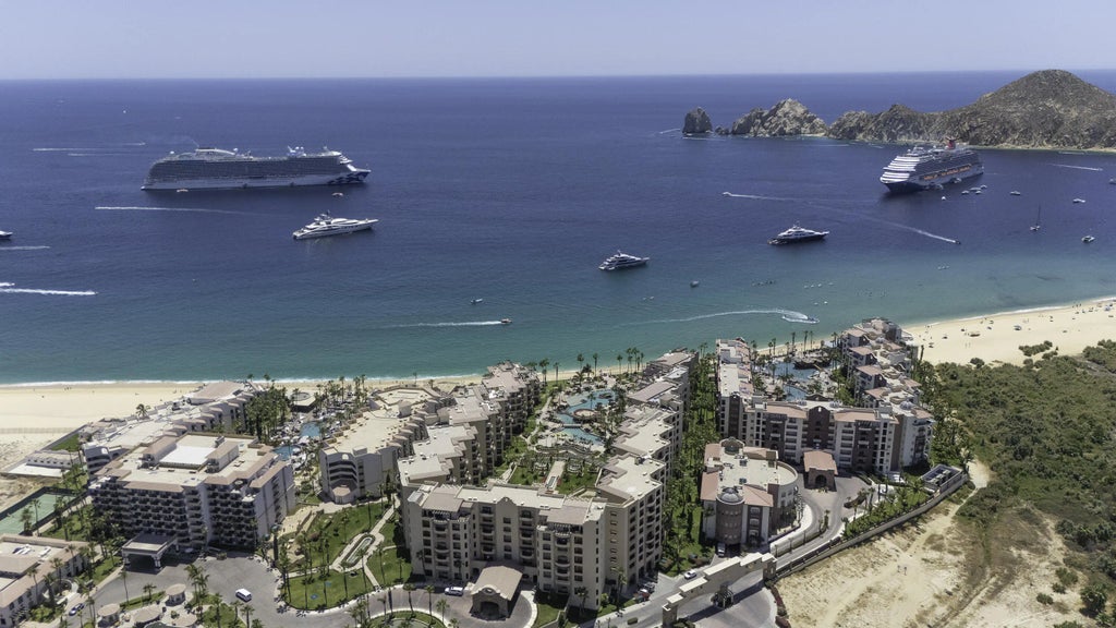 2 BD /3 BA Villa with 2,100 Sq Ft on the 4th floor of Phase 2 of Villa La Estancia is one of the finest available. Totally and expertly furnished and decorated to capture the vibrant colors, culture, Art, and refined beauty of Cabo and Baja. ALL upgraded. This Villa really ''pops'' with Granite Counters, stainless steel appliances, Flat Screen TVs and ART Work and custom décor throughout...and of course a wine cooler! This Villa is total Luxury, and is fully Turn Key! You will be amazed at the Quality and beauty! Offers stunning views over the gardens to the ocean, 5 Star Resort Living at it's finest! For the most discriminating Buyer.