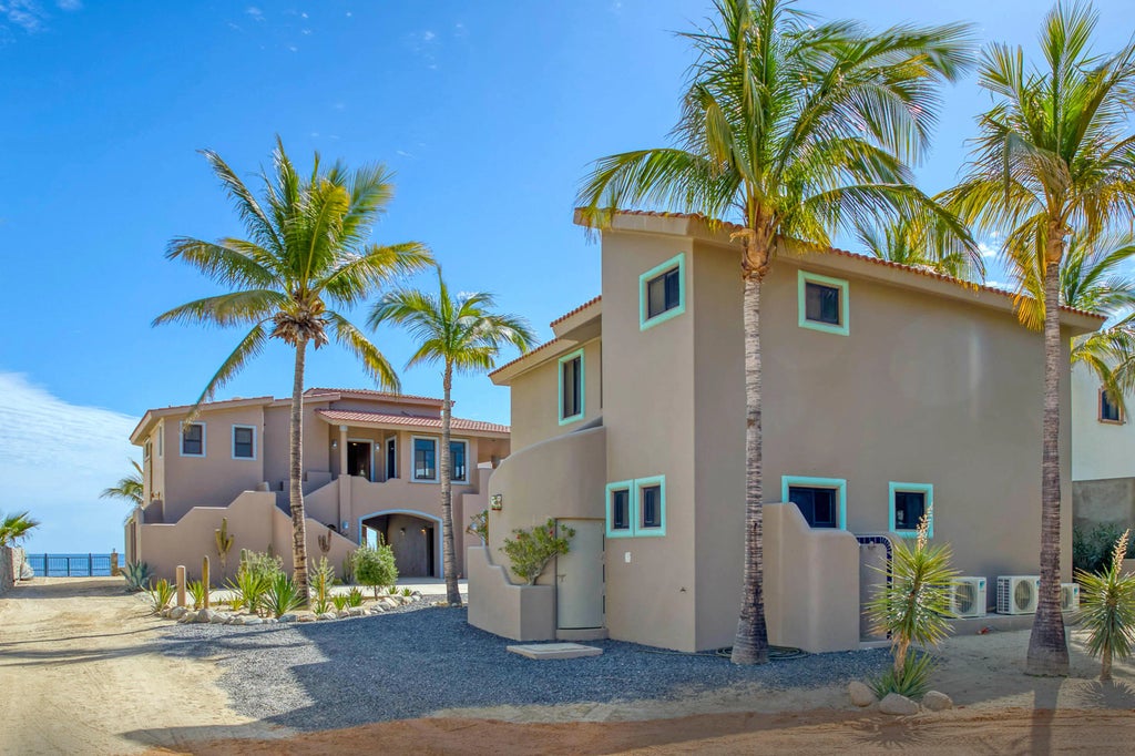 Introducing Casa Marina: A rare beachfront home in a private gated compound, on one of the best white sand beaches in Los Barriles. It is far enough away from the downtown area to be private, but close enough so you can get to town in minutes. This home has spectacular 180 degree views of the Sea of Cortez and Sierra de Laguna Mountains. The Main Casa features a large Great Room with Kitchen and huge Breakfast Bar that can seat 7. The newly furnished Living Room area has soaring ceilings, floor to ceiling windows, A/C, 2 large Bedrooms, both with private baths and walk-in closets. The outdoor wrap around patio has a side barbeque area, fireplace and dining table for family dinners, with a view of the entire coastline. Casita Marina is an additional newly built home of similar style as the beachfront home. This modern, light and airy Casita has 2 stories, three bedrooms, 2 1/2 baths, laundry, kitchen, living room, A/C, and many private patios. This Grand Casita is Very Rentable!