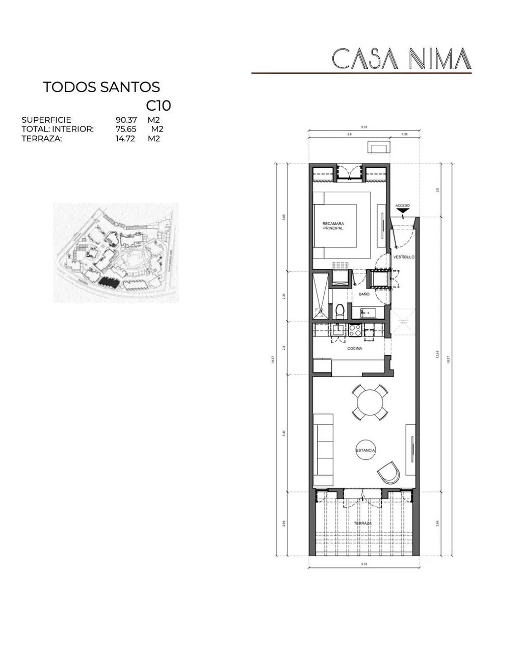 This spacious 1-bedroom casita features a beautiful arched hallway with a skylight that fills the space with natural light. The full bathroom offers dual access from both the bedroom and living area. Enjoy a generous patio with great sunlight, perfect for installing a BBQ and creating your own outdoor retreat. The resort-style community features a two-level gym with cardio, weights, yoga and pilates rooms, steam rooms, and showers, plus two pickleball courts, a heated pool with jacuzzi, kids' splash pad, game area, beach club-inspired palapa bar with sand, a beautiful restaurant, coworking spaces, and a vibrant kids club. Built with 20 cm concrete walls (no drywall) and high ceilings, the property stays cool and quiet year-round, even during the hottest summer days.