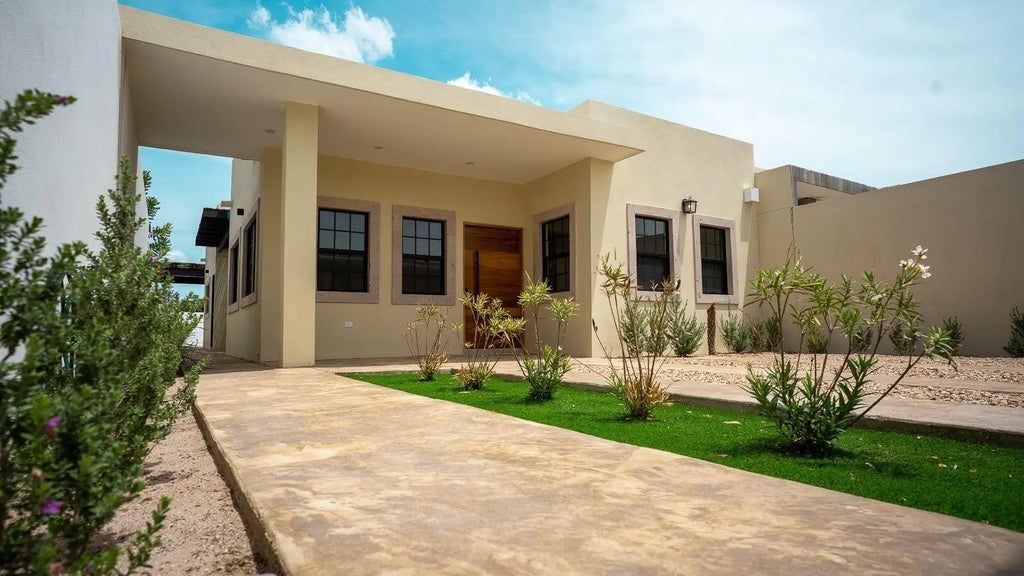Make this house located in a serene and safe area all yours. Its luxury finishes shine with the warmth of the parota wood, which adorns every corner, spacious bedrooms, as well as a third space for a study or bdr, it offers a refuge of comfort and tranquility, the pool invites you to relax, perfect for gatherings with friends and family. The pergola terrace offer additional spaces to enjoy the outdoors. This house is the dream come true for those looking for a luxury home in a quiet and safe environment. PROPERTY EQUIPMENT: • Pool 6.00x4.00 meters with machine room.2 automatic anti-cyclone metal curtains. Pool deck with stamped concrete. Stamped concrete walkers, fridge, AC inverter, *Ugradepackage to built BBQgrill& equipped with a wood-burning oven, and concrete bar $20,283 USD