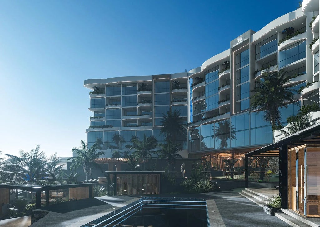 Condomium Resort with 3 buildings 5 stories facing the ocean with amenities such as swmming pool, jacuzzi, playground, restaurante, lounge, tiki bar, convenience store, laundry room, spa, sauna, steam room, parking, energy self sustained, rental office with studios, 1 and 2 bedrooms, penthoses amd lofts. Main complex feature is self sustain energy system composed of 550 watts solar cells covering parking slots, wind complementary turbines to reduce night use of lithium batteries and completed with gas generator to prevent peaks of demand or sun covered days.