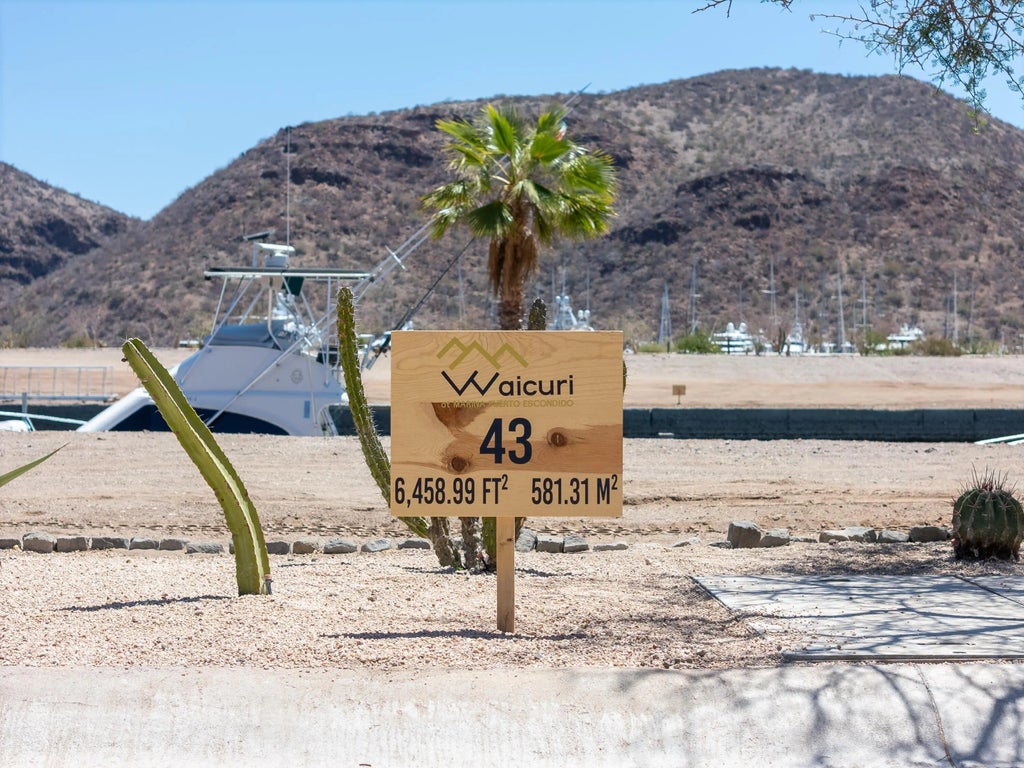 Discover Lot 43 at Marina Puerto Escondido's serene Waicuri 1 subdivision! Spanning 600.06 square meters, this spacious lot is a perfect canvas for a tranquil and active lifestyle in Baja California Sur's premier waterfront community, where natural beauty and refined living come together. Nestled with 360-degree views of the majestic Sierra de la Gigante Mountains and the pristine waters of the Marina, Lot 43 offers a peaceful setting for your custom-built home. Each day brings the chance to witness the changing light over the Sea of Cortez, from the soft glow of sunrise to the serene colors of evening, making this location a haven for those who value a quiet connection to nature.
