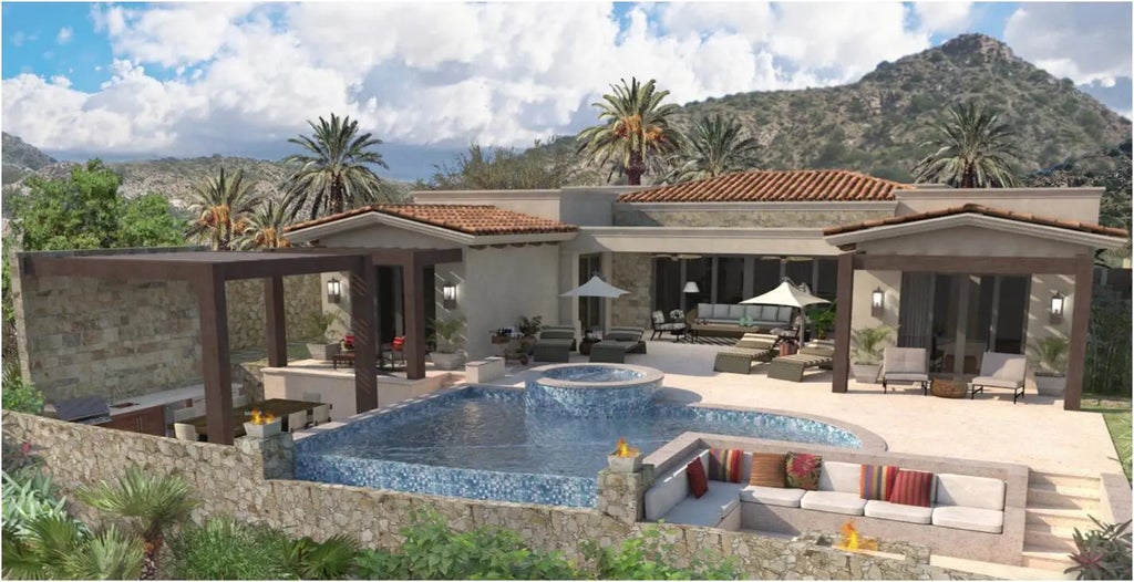 This is the financed price for the Luna 5 bed home plan. The floor plan boasts a great room with vaulted ceilings over the living/dining area which looks out over the large covered terrace and the hand-made infinity edge pool beyond. The chefs kitchen with huge island with seating boasts Wolf and Sub-Zero appliances. The master and guest master have large ensuite baths w/ shower and tubs, and also both have ocean views. Guest casita off entrance courtyard. Twin guest bedrooms share Jack and Jill bath or can be upgrades to separate en-suites. Owners select all of their finishes from the contemporary catalog. Home comes with all finishes, cabinetry, appliances, pool. Upgrades from catalog: jacuzzi, grill, fire pit, wine cave, rain showers, fountain, fireplace, ice maker, pool bath, etc