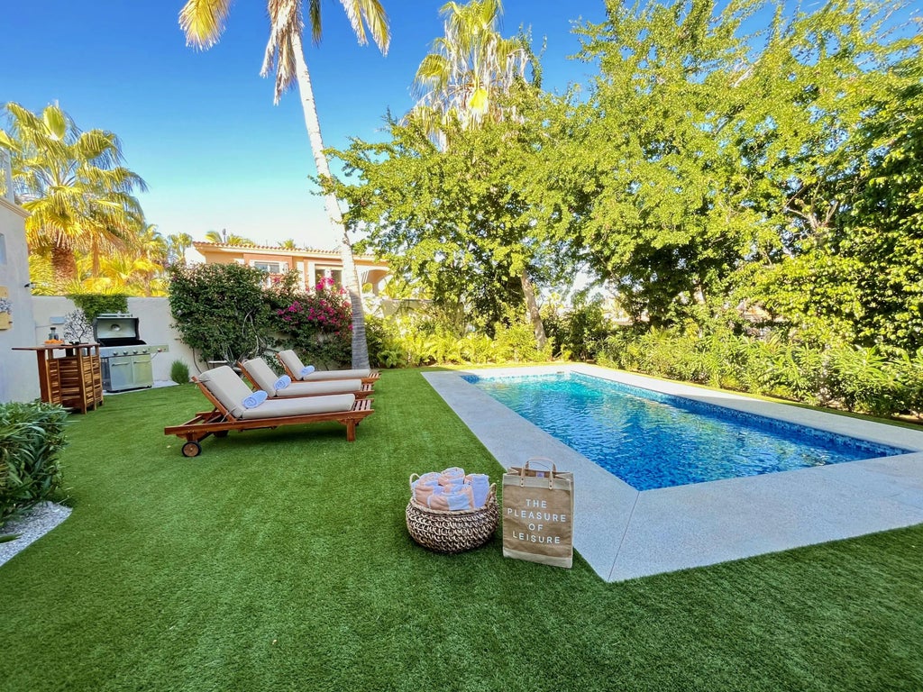 MOVE-IN- READY! Alluring 5 B-Family home accommodates 14 of your loved ones! A PROVEN ROI villa, great combination! Good occupancy history+low maintenance costs! Fully renovated by interior designer, who has meticulously designed with modern luxury & comfort in mind. Feel the privacy in its 4100+ sq ft, this spacious home boasts 5 generous size bedrooms w/ensuite baths for your guests, most providing access to the inviting pool & garden oasis. Master bedroom features an expansive bath, with elegant bathtub, plus a secret garden jetted Jacuzzi for four. A fully equipped kitchen w/quartz countertops & custom-made huanacaxtle cabinets makes the cooking a joy of elegance while enjoying ocean breezes from the large 'Al Fresco' terrace overlooking the deep blue sea of Cortez. Call Now! *See PR* Nestled in the highly desired community of La Jolla, one of the most sought-after neighborhoods in Los Cabos, offering tennis & pickleball courts, kiddy park, guarded 24/7, well-manicured grounds & easy beach access, only 5 minutes drive from prestigious Palmilla beach, spa, shops and gourmet restaurants, 5 min drive to San Jose mesmerizing Art district and an easy 20 min drive to/from Los Cabos International airport. With its prime location, stunning design, and strong rental history, this villa is an ideal investment opportunity. wait no more! Schedule a private tour now.