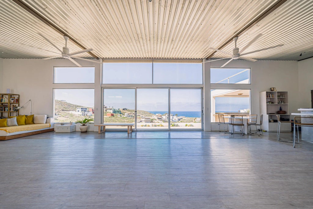 Welcome to Baja Zen, located in the exclusive Gavilan neighborhood of El Pescadero, just 2 km from Cerritos and 1 hour from SJD Airport. This 2,000 m² property consists of 3 separate buildings The main building has an open floor plan with high ceilings and floor-to-ceiling windows for breathtaking ocean views from every angle. Currently used as an artist studio, this versatile space previously hosted yoga and wellness retreats, utilizing the large yoga area and gourmet kitchen. Outside, a serene Zen Garden filled with native cacti provides the perfect setting for relaxation. An outdoor staircase leads to two private bedrooms, each with its own bathroom. Baja Zen holds the possibility of becoming a boutique hotel, wellness center, artist studio, or a cozy family residence. Additional amenities include an outdoor pizza oven, whole-property water filtration system, al fresco BBQ and dining areas, a hot and cool plunge tub, and beautifully landscaped grounds with native plants and irrigation.