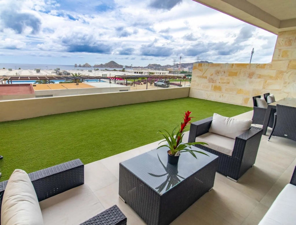Turn key on first floor pent Garden 3 bedroom, 3 ½ bathroom.Hardly used designer furniture package from the developer,4 pools including a 40 meter lap pool,GYM,big club house,BBQ area,tennis court and pickle ball court.Each building has a diesel generator to supply full power in case of a power outage.The development has its own water recycling plant, the water is used to water the landscape including grass,palm trees and bugambilias.Great location walking distance to Costco,plaza nova and a new 24 hour Soriana grocery store and GYM.10 minutes drive to the main beach and downtown. Excellent investment, rentals are allowed by the night and month,pet friendly development.The overzised terrace is ready to build a jacuzzi, plunge pool,outdoor kitchen,fire pit, etc.
