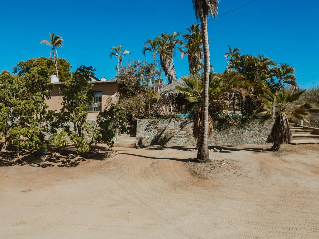 This former home converted into commercial office space consists of 4 offices, one full bathroom and an outdoor kitchen. The property makes for a perfect living/workspace in Pescadero with easy access to the highway. It is completely enclosed and features a large palapa covered concrete patio area, and rock terraced landscaping with 20 mature fruit trees. The upper portion of the property has great potential for an ocean view residence. Contact Rick to view this unique and adaptable building!