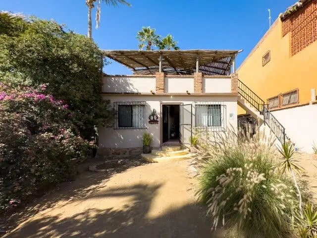 This charming 3 bedroom 3 bath home in the Heart of Todos Santos offers 2bedrooms 2 baths with an additional room for den, office or create a large master suite on the main level with a separate 2nd story bedroom and bath with private entry. Great family home or vacation rental. Two upper balconies with views. Mature landscaping and walled and gated. Excellent location. Right off the main road and within walking distance to shopping, restaurants and entertainment. Established neighborhood.