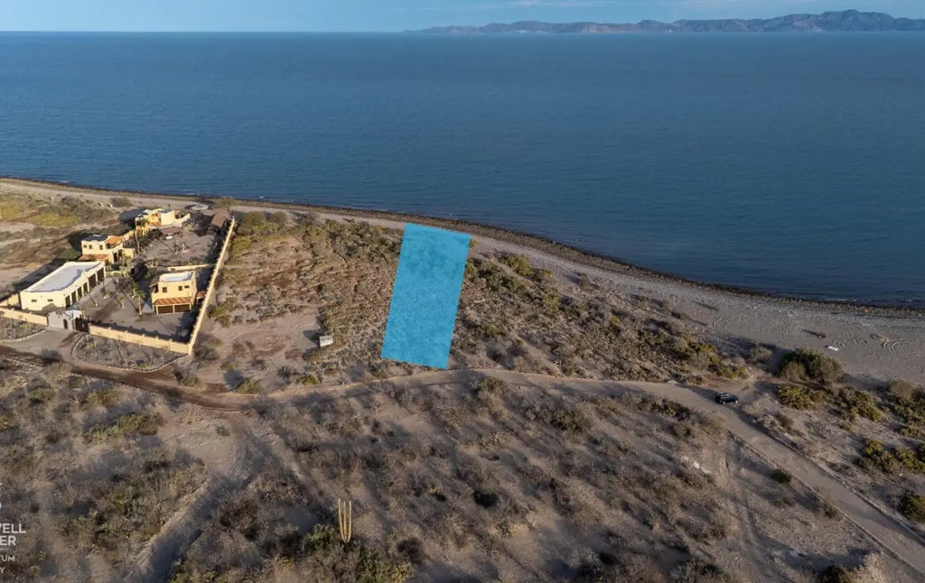 This beachfront lot #66 offers the perfect balance of seclusion and convenience, providing a private haven. Escape to the serene beauty and tranquility of El Bajo, a peaceful, off-the-grid community, with this incredible oceanfront property. Just 7.8 km (4.85 miles) north of downtown Loreto, only a short 20 minute drive away, you can easily enjoy the town's charming culture, dining, and recreational activities, then return to your peaceful oasis. With 26.75 meters (87.7 feet) of pristine waterfront and a generous 117 meters (383.78 feet) in-depth, this 2,356.54m² (25,358.24 ft²) (0.582 acres) lot offers unparalleled space to build your dream home, perfectly positioned to take in unobstructed views of the Sea of Cortez, Coronado Island, the Federal Marine Park, and the majestic Sierra de la Giganta mountains.