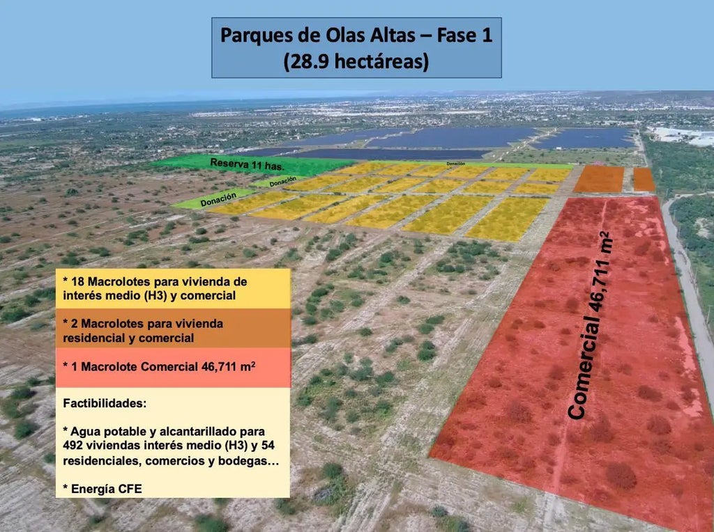 A unique 28.9-hectare parcel (21 ha net developable) strategically located along the La Paz-Los Cabos highway, within the natural growth corridor of La Paz. This property offers an exceptional opportunity to develop a master-planned community combining medium-density housing (H3), residential lots, and commercial frontage.All key feasibility studies are in place — potable water, sewage, and CFE power supply — enabling immediate project structuring and reducing development risk. The land is flat, impact-approved (MIA), fully subdivided, and includes municipally approved internal roads that add surface value to the total parcel. Its location — minutes from downtown La Paz, the international airport, makes it ideal for mixed-use, residential, or hospitality proojects seeking l/t value