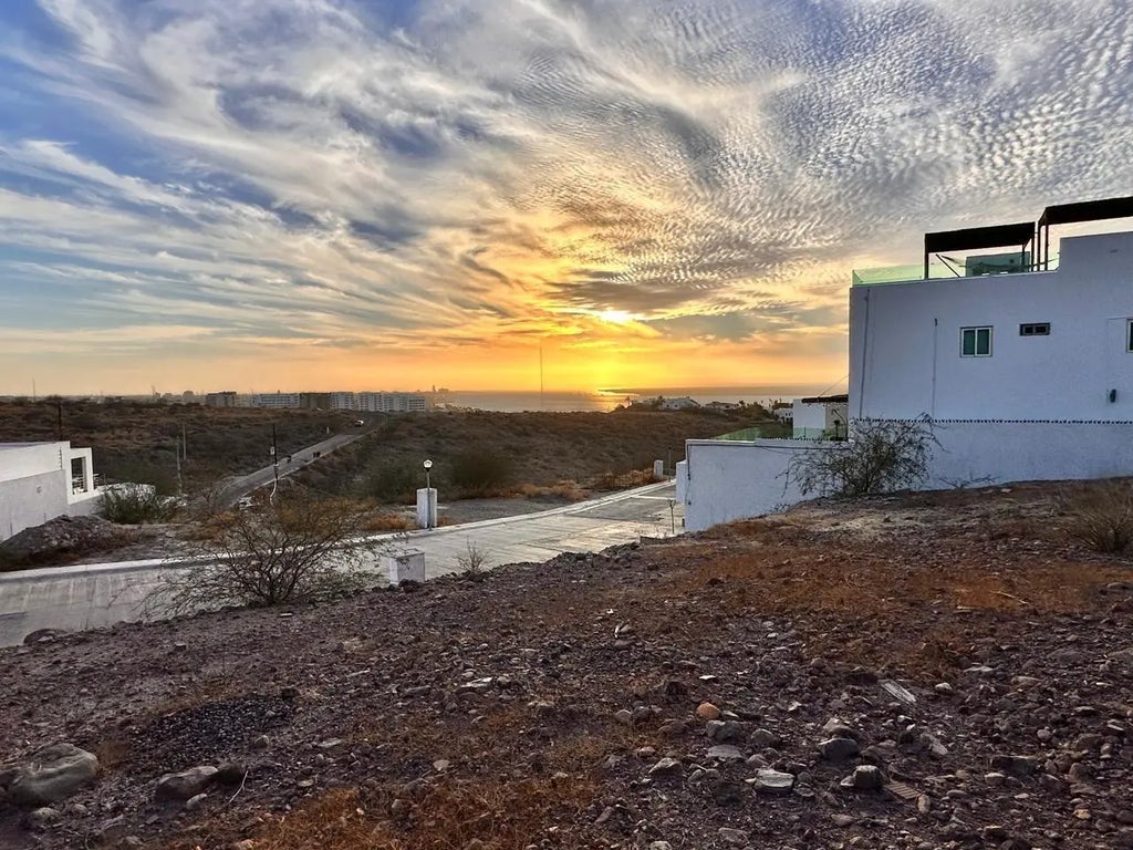 This Palmira lot sits on a scenic hill with a stunning bay view. The property boasts elevated positioning, offering great panoramic views of the sparkling waters in La Paz and amazing sunsets, making it an ideal spot for a custom home or a retreat. The land is gently sloping, providing a natural foundation for construction, and is surrounded by nature and beach homes offering both privacy and tranquility. The hilltop location ensures a peaceful atmosphere, with cool breezes and natural beauty. Accessible by a well-maintained road, the lot is close to amenities, malecon and few minutes from the best restaurants while still maintaining a sense of seclusion. It's a prime location for anyone seeking both serenity and the beauty of coastal living..